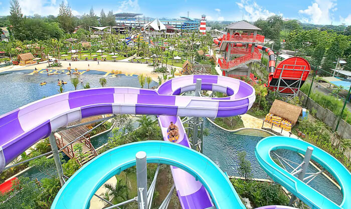 Jogja Bay Waterpark merupakan taman air terbesar di Jogja dengan luas 11 hektar dan 19 wahana air. Selanjutnya, taman ini juga memiliki wahana yang seru yaitu bajak laut. Dan juga memiliki berbagai elemen yang akan membuat anak-anak tertarik untuk menginap disini.